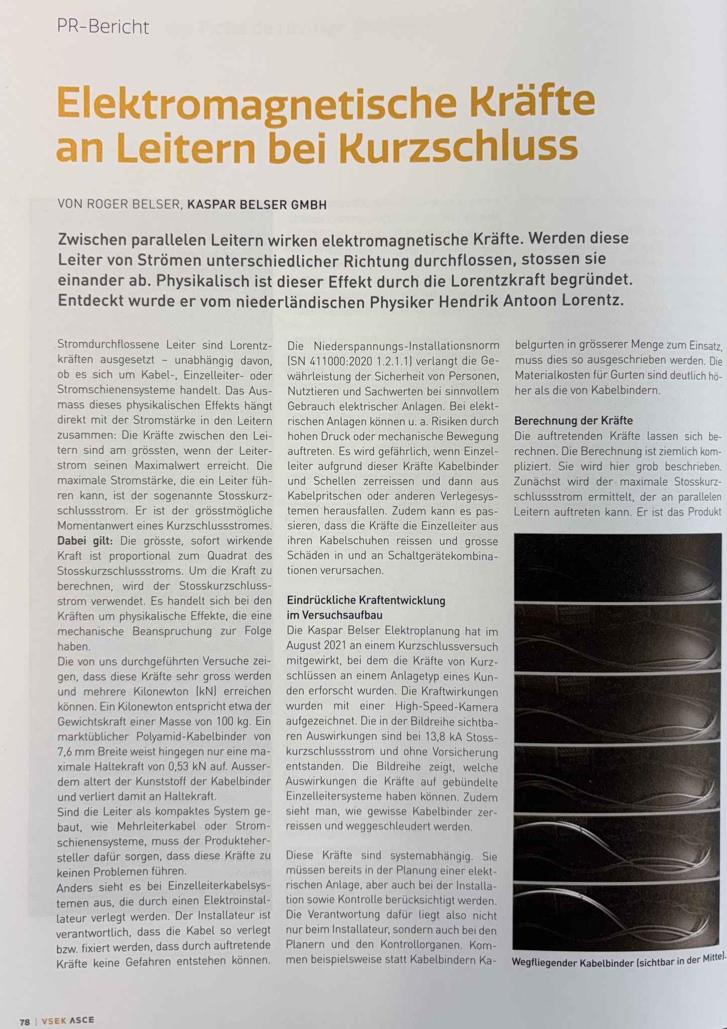 Es freut uns sehr, mit unserem Fachartikel "Elektromagnetische Kräfte an Leitern bei Kurzschluss" Teil der 166. Ausgabe des CHECK, dem Magazin des VSEK Verband Schweizerischer Elektrokontrollen, zu sein und unser Fachwissen einem breiten Publikum in der Elektrobranche zugänglich zu machen.