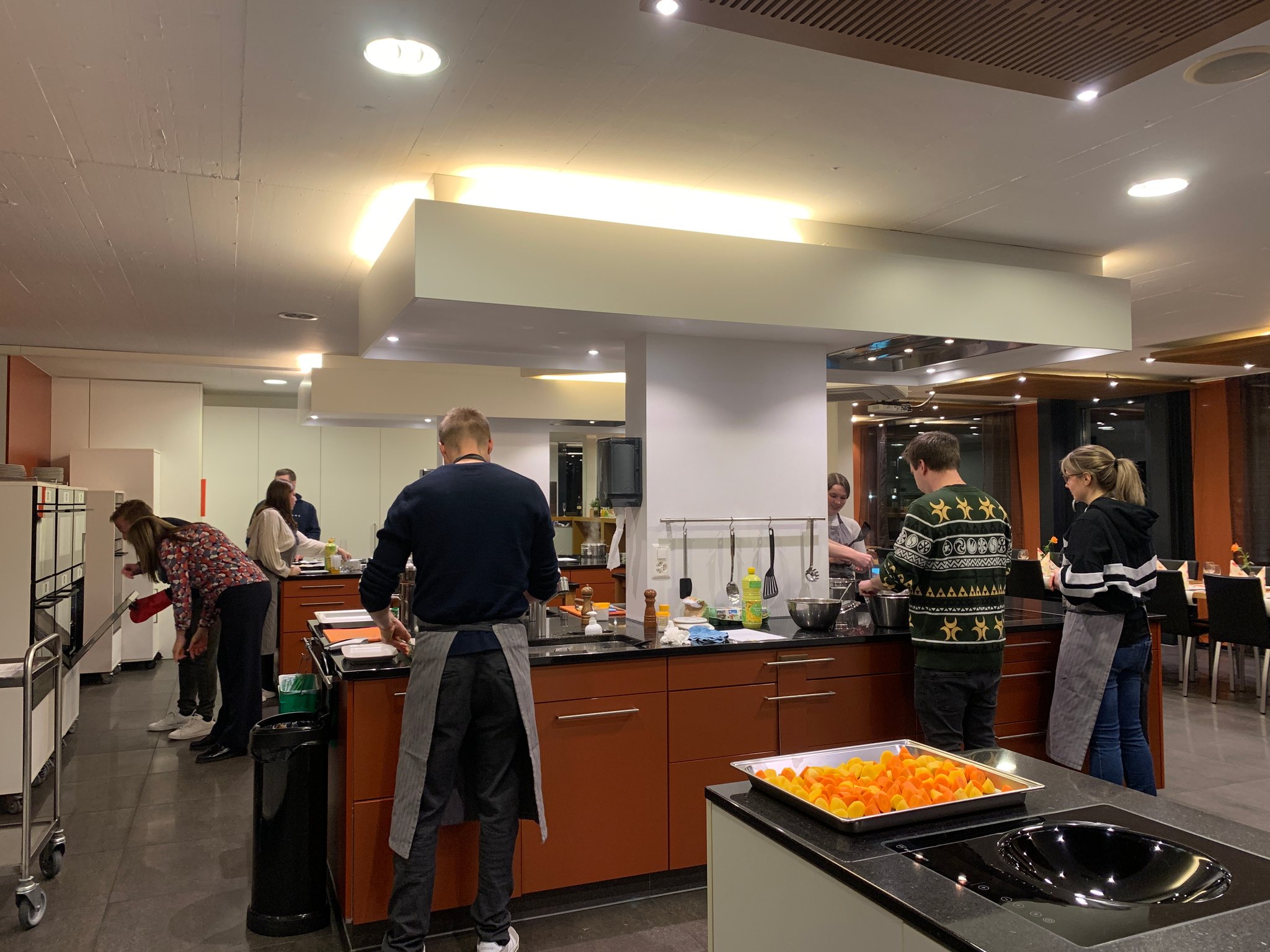 Für unser diesjähriges Geschäftsessen haben wir die Kochschürze selbst geschnürt und uns in der Kochburg Lenzburg mit feinen Schweizer Spezialitäten bekocht. Von Bündner Kartoffelsuppe mit Rohschinken-Chips über hausgemachte Spätzli bis hin zu Toblerone Töpfli - das gemeinsame Teamkochen war ein einzigartiges Erlebnis und hat uns viel Spass und Freude bereitet.