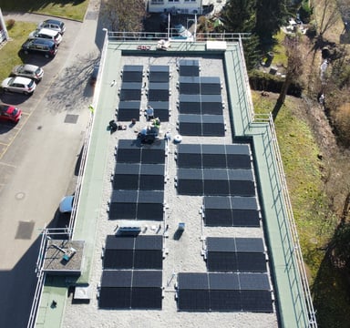 Passend zum sonnigen Wetter konnten wir ein weiteres PV-Projekt erfolgreich abschliessen. Unser erstes Mehrfamilienhaus, welches mit insgesamt 72 Modulen eine Leistung von rund 32'000kWh